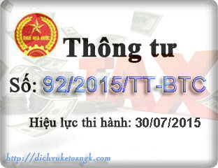 Thông tư 92/2015/TT-BTC hướng dẫn về thế GTGT và thuế TNCN